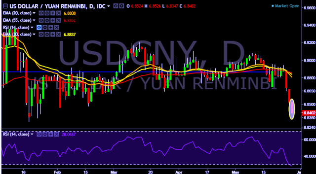 We prefer to take short position in USD/CNY around 6.85, stop loss 6.8710 and target of 6.8090.
