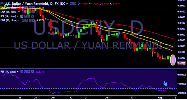We prefer to take short position in USD/CNY around 6.7050, stop loss at 6.7289 and target of 6.6778.