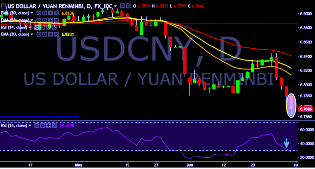 We prefer to take short position in USD/CNY around 6.7738, stop loss at 6.7983 and target of 6.7222.