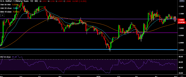 - A sustained close above 7.0666 marks will test key resistances at 7.0767, 7.0982, 7.1022, 7.1095 and 7.1266 marks respectively.