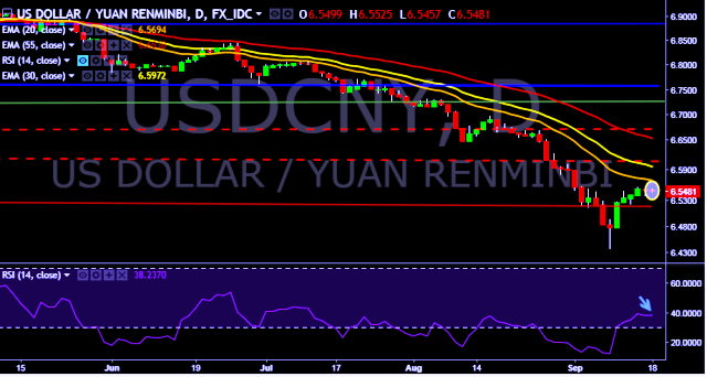 We prefer to take short position in USD/CNY only below 6.5399, stop loss at 6.5526 and target of 6.5253.