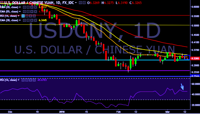 We prefer to take short position on USD/CNY only below 6.3092, stop loss at 6.3400 and target of 6.2942/6.2584.
