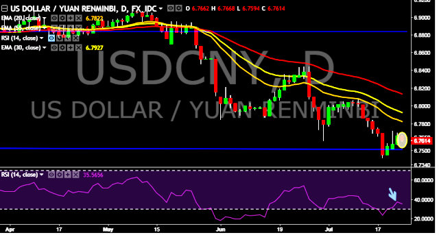 We prefer to take short position in USD/CNY around 6.7625, stop loss at 6.7700 and target of 6.7510.