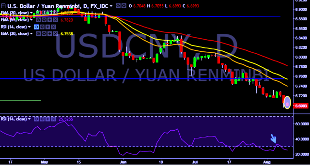 We prefer to take short position in USD/CNY around 6.7020, stop loss at 6.7206 and target of 6.6778.
