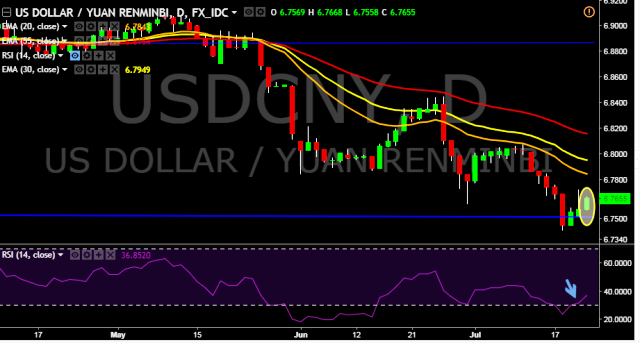 We prefer to take long position in USD/CNY only above 6.7720, stop loss at 6.7510 and target of 6.7842.