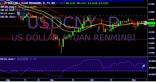 We prefer to take short position in USD/CNY around 6.6320, stop loss at 6.6464 and target of 6.6049.