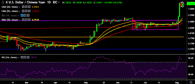 - It made intraday high at 7.0518 and low at 7.0222 levels.