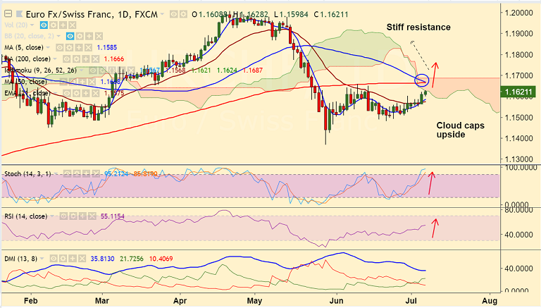 - Upside in the pair has paused at daily cloud which is stiff resistance at 1.1624.