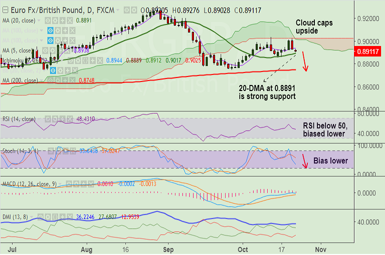 - 20-DMA at 0.8892 offers strong support, break below will accentuate weakness. Scope then for test of 200-DMA at 0.8748.