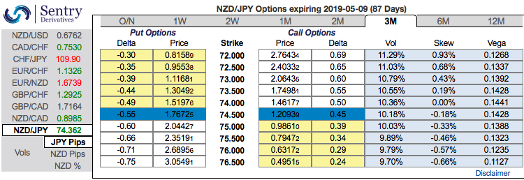 To substantiate the bearish stance of underlying spot FX, the 3m positively skewed implied volatilities also indicate the hedging sentiments for the lingering bearish risks. Bids are for OTM puts up to 72.000 levels.