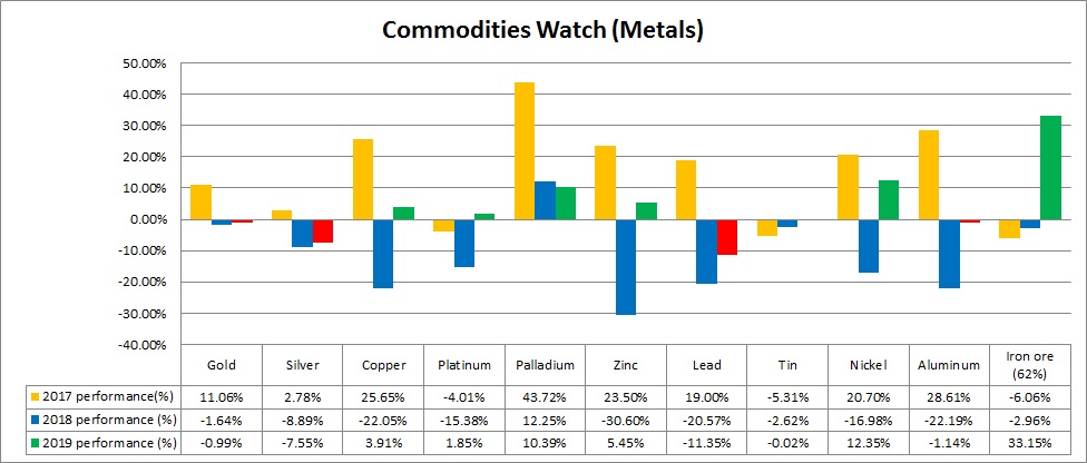 The metal pack was the best performer of 2017 with a 14.5 percent gain. Since 2018, Sino-American trade war has been taking a toll on metals.