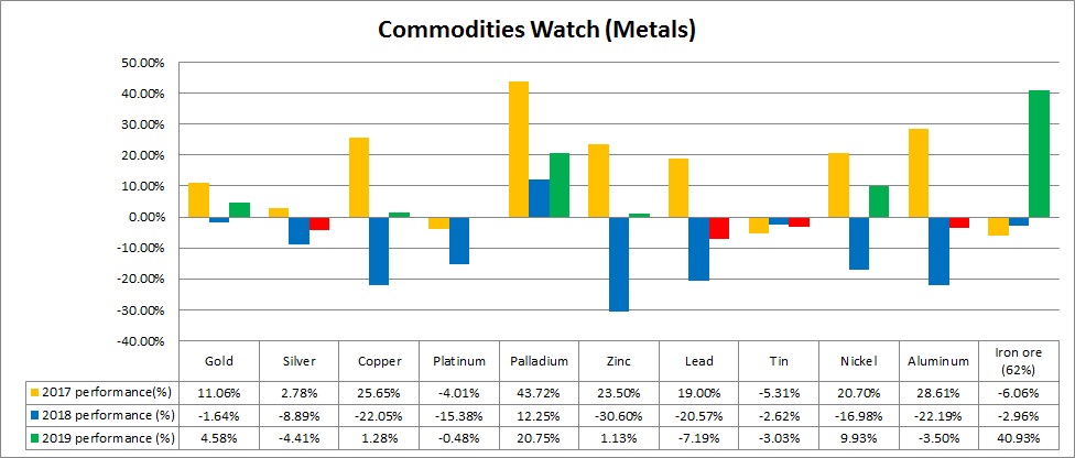 The metal pack was the best performer of 2017 with a 14.5 percent gain. Since 2018, Sino-American trade war has been taking a toll on metals.