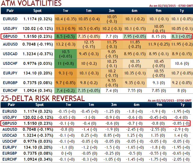 Rationale: As there are no significant data releases that could propel GBP side for next week until Thursday except service PMI. On thursaday, BoE's official bank rate is scheduled which we think at 0.5% for more than six years, looks set to remain fixed until well into 2016, according to markets. It could be far longer, and in near future GBPUSD may likely to experience low volatility. You can make out from the nutshell showing IV; GBPUSD is to have the least IV among G7 currency pool.