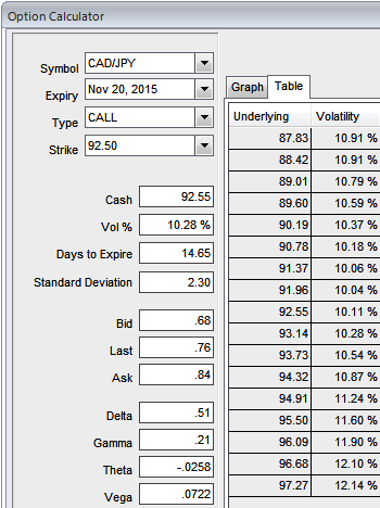 Hence, the recommendation on buying (1%) OTM 0.15 delta call, while simultaneously shorting an ATM call with similar expiries and buy another (1%) ITM 0.80 delta call while simultaneously shorting another ATM put with similar expiries. This strategy is structured for a larger probability of earning a smaller but certain profit as CADJPY is perceived to have a low volatility.