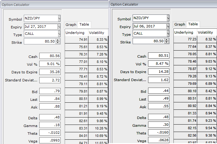 ATM IVs of NZDJPY is trading between 9% and 8.5% for 1m and 2w tenors respectively.