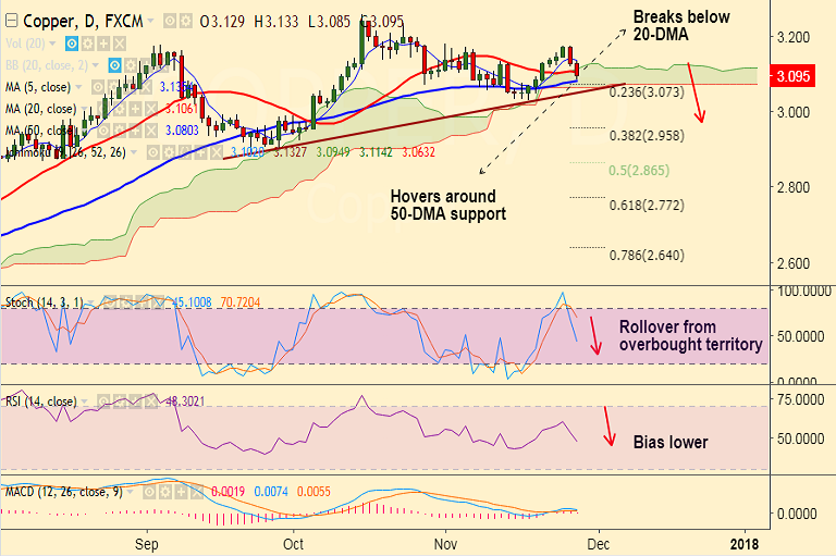- Copper slips below daily Ichimoku cloud, intraday bias bearish.
