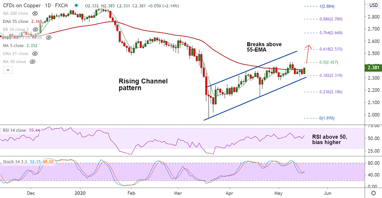 On the flipside, decisive break below 21-EMA (2.341) will see dip till channel base at 2.300.