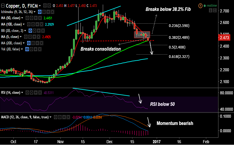 - Support levels - 2.445 (trendline and 50-DMA), 2.426 (Nov 15 low), 2.408 (50% Fib)