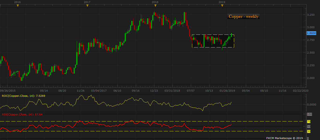 - The red metal is currently trading at $2.88 per pound as it clears its consolidating zone ($2.6-2.85 per pound.