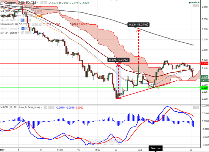 - Copper has retreated after making a high of 2.142. It is currently trading around 2.079.