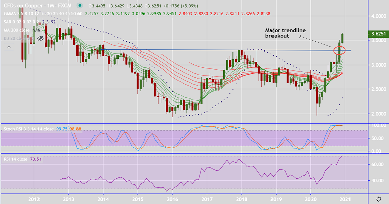 Bullish bias boosted after price action broke major trendline resistance at 3.30 in the previous month's trade.