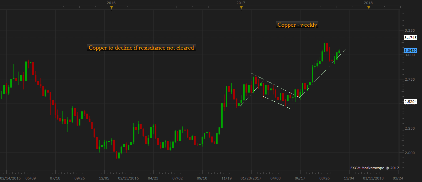 Though the copper price has risen for third consecutive week (including current) after a support base around $2.9 per pound and is currently trading at $3.04 per pound, or calculations show that the price might take a sharp dip and reach as low as $2.5 per pound area if bulls fail to clear the previous peak around $3.18 per pound.
