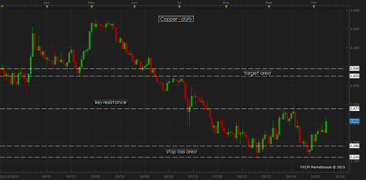 - Short side - Sell Copper above $2.6/pound with stop loss around $3/pound and target around $1.84/pound and $1.36/pound.