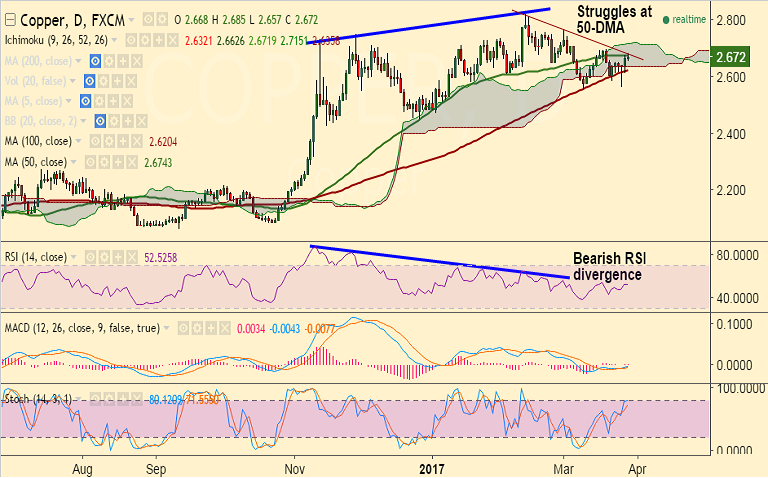 - However, upside seen struggling at 50-DMA at 2.6742 which is also major trendline resistance.