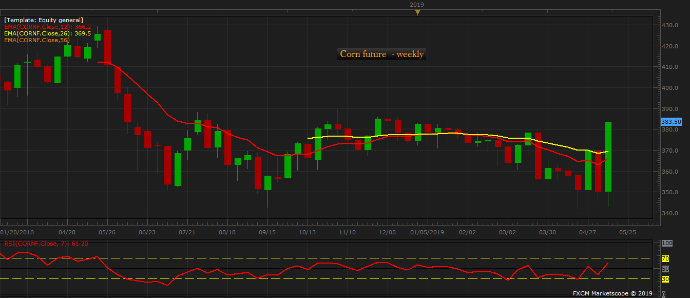 As a result of the trade war between the U.S. and China, the Corn price declined 342 cents per bushel. However, President Trump successfully placed a floor under it. The price is currently trading at 383 cents per bushel, up almost 12 percent.