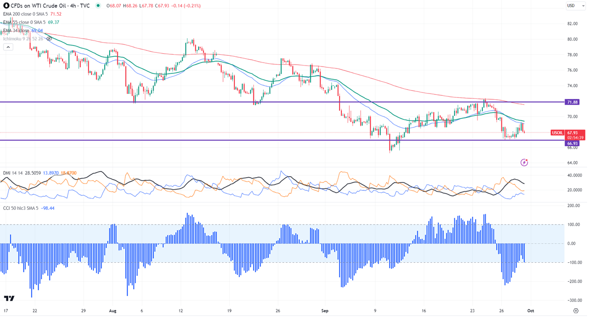It is good to sell on rallies around $69 with SL around $70 for TP of $67.