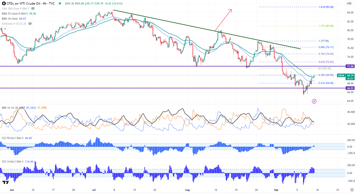 Crude oil showed a nice bounce back above $69.50 on supply concerns. It hits a low of $65.29 and is currently trading around $69.75