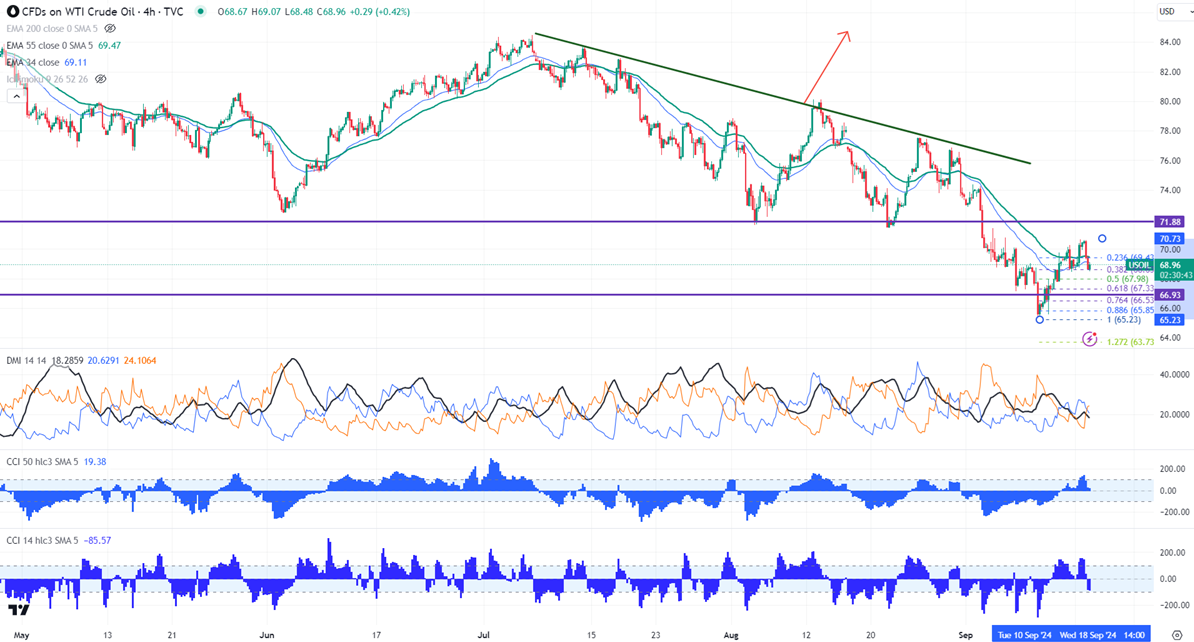 It is good to sell on rallies around $70 with SL around $70.90 for TP of $67.