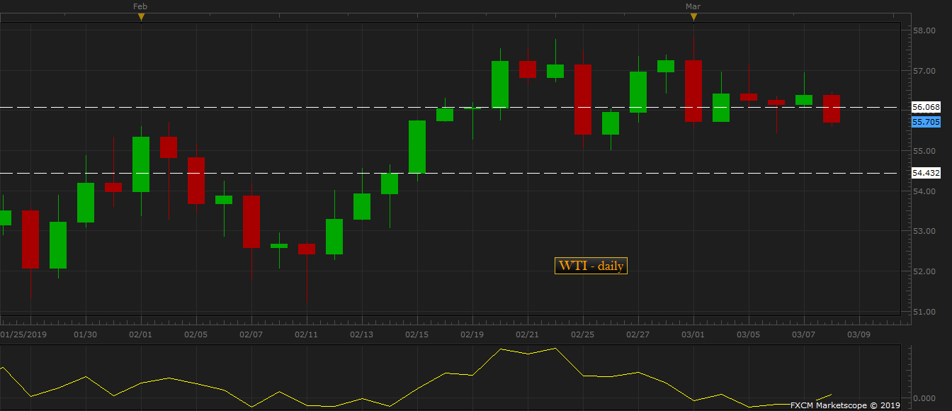 - Price actions have been forming back to back the hammer and inverted hammer candles and both bulls and bears failed to breach key resistance around $57.1 per barrel area, and key support around $55.5 per barrel area. Last night, an inverted hammer was formed, which gives downside bias today.