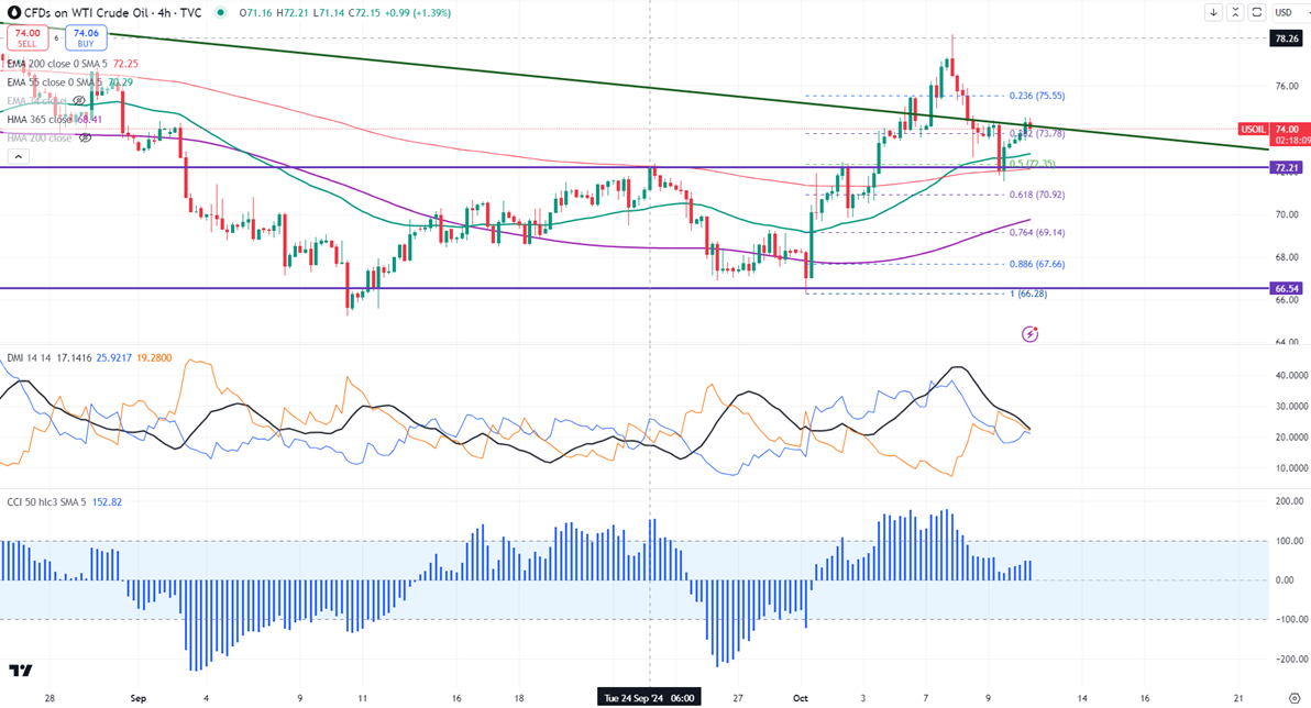 FxWirePro- Crude oil trades higher on Middle East escalation, buy above $72.50