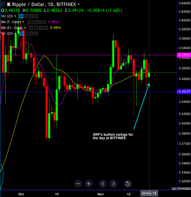 XRPUSD at Bitfinex and XRPUSD at Bittrex: