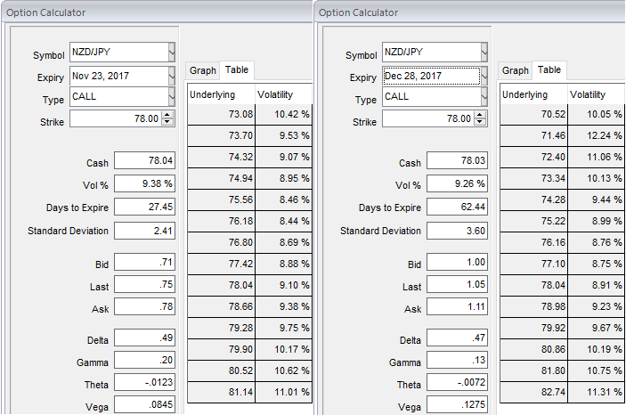 ATM IVs of NZDJPY is trading between 9.26% and 9.4% for 1 and 2m tenors respectively.