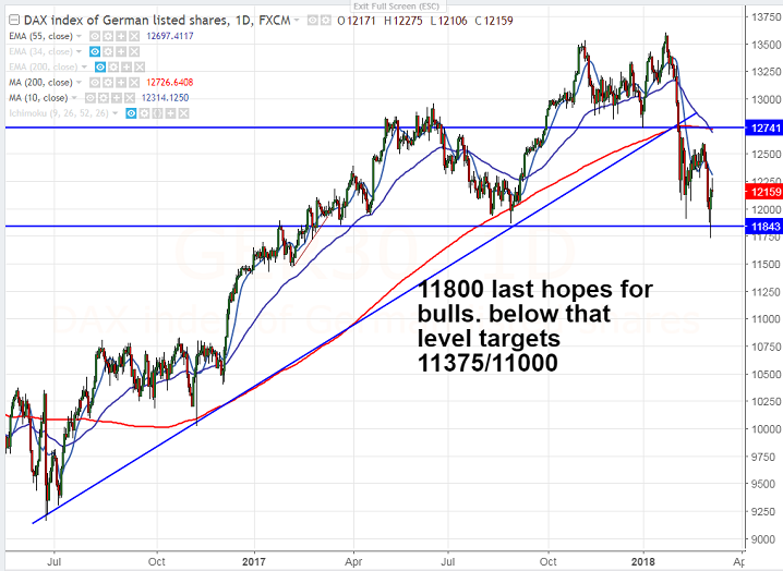 - DAX index is trading flat after a minor jump from the low of 11730 made on Friday and closed slightly weak at 12159 0.1% lower. US futures has shown a good sell-off after US President Trump’s chief economic advisor Gary Cohn resigned. S&P500 futures is trading weak after hitting high of 2732 .It is trading at 2694 1.09% lower. Asian stock indices are trading lower on the footsteps of US markets.