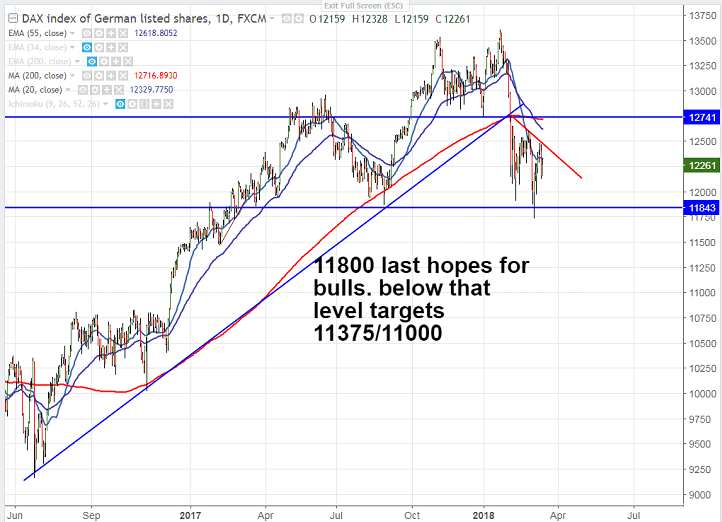 - DAX index was trading slightly higher yesterday and closed at 12261 0.84% higher. US markets has shown a minor weakness of almost 1% on account of trade war fears. US Dow closed at 24758 (1% lower) and S&P500 at 2749 (0.5% lower). The main reason for Dow’s decline was Boeing which declined more than 2% on fears of trade war with China. S&P500 futures is trading flat and is at 2755 0.0% and traders eyes US Empire state manufacturing and Philly Fed manufacturing index which is to be released today for further direction. Asian stock indices is trading weak following footsteps of US markets.