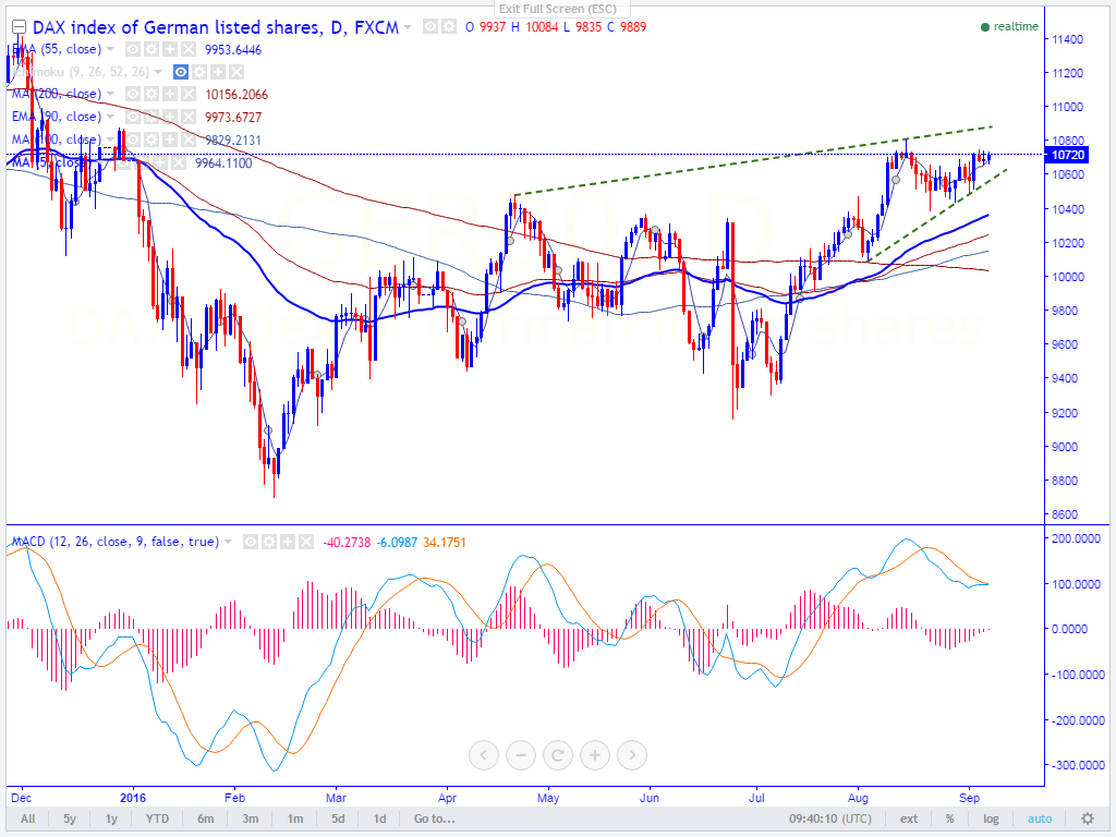 - In the daily the index is consolidating between 10753 and 10656 for the past two trading session.It should break above 10880 for further bullishness.
