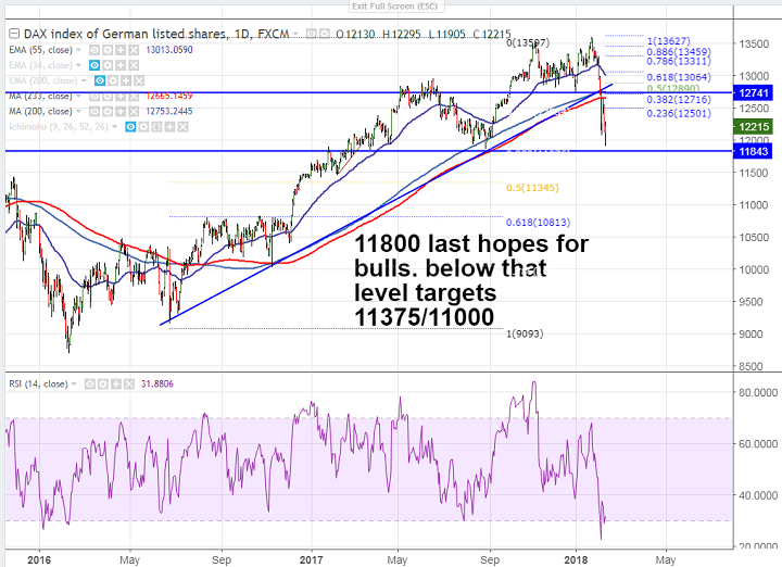 - DAX index recovered almost 400 points 3.21% from low of 11905 and has closed around 12215.