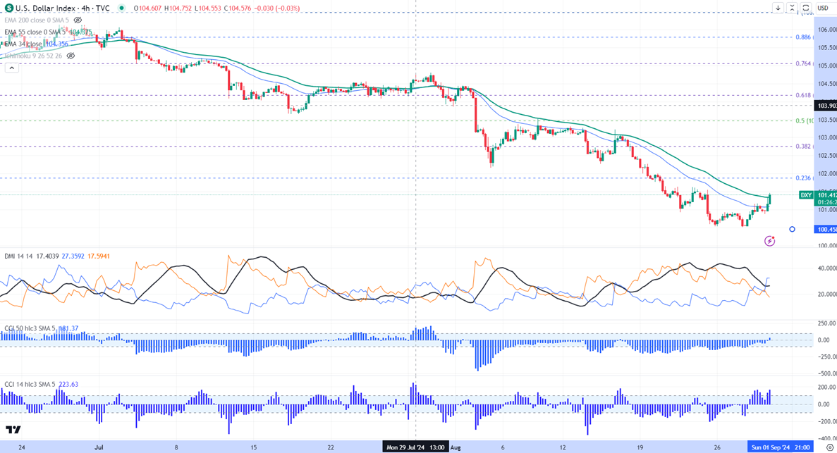 DXY showed a major pullback after strong data. It hit a high of 101.46 and is currently trading around 101.382.