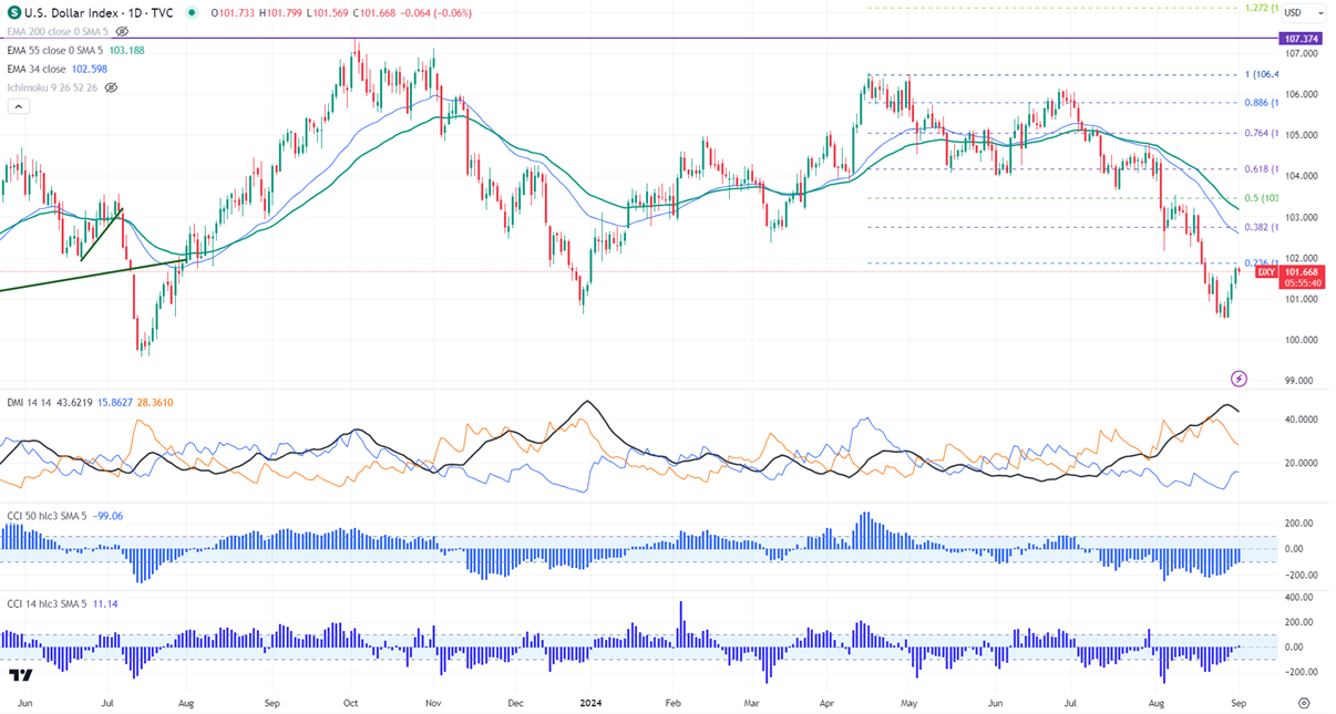 DXY trades flat on holiday mood in the US. It hit a high of 101.74 and is currently trading around 101.677.