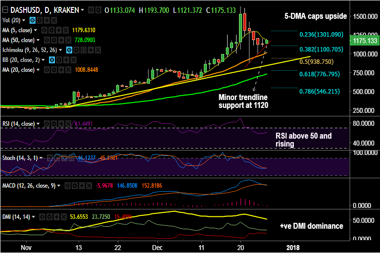 Resistance levels - 1178.71 (5-DMA), 1250 (Dec 17 high), 1301 (23.6% Fib)
