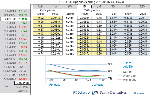 All these bearish driving forces seem to be factored-in OTC markets. Please be noted that the positively skewed IVs of 1m tenors signify the hedgers’ interests to bid OTM put strikes upto 1.29 levels (refer above nutshell evidencing IV skews).