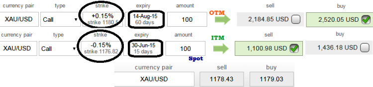 Options Strategy: (XAU/USD) Diagonal call spread