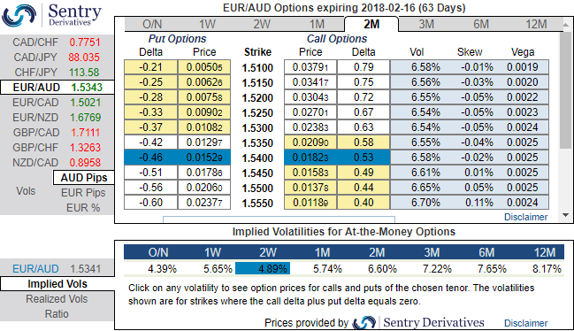 Thus, contemplating all the above underlying factors of EURAUD, we like being short vol in short run, selling that premium conditionally on a pay-off benefiting from a lower spot.