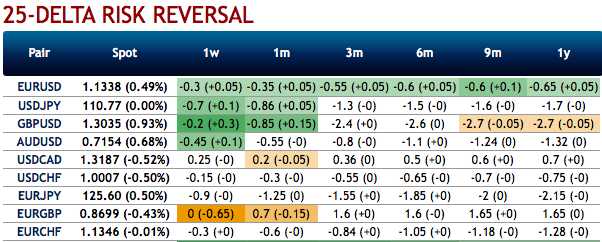 It remains more expensive to hedge against strong GBP depreciation, which means that an orderly Brexit in whatever shape is still seen as being more likely. However, the risk of things going wrong is high and as a result, we regard any GBP appreciation with much skepticism.