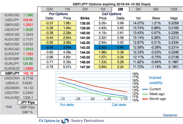 Given the condition that IVs keep rising and if GBPJPY spot keeps dipping, then the vega longs would add handsome option’s premiums to the price of such puts correspondingly, these derivatives instruments target further bearishness of this pair. Courtesy: Sentrix
