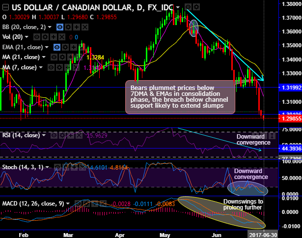 BoC officials signaled a hawkish turn and the technical picture suggests that the USDCAD has broken below 1.30 as anticipated.