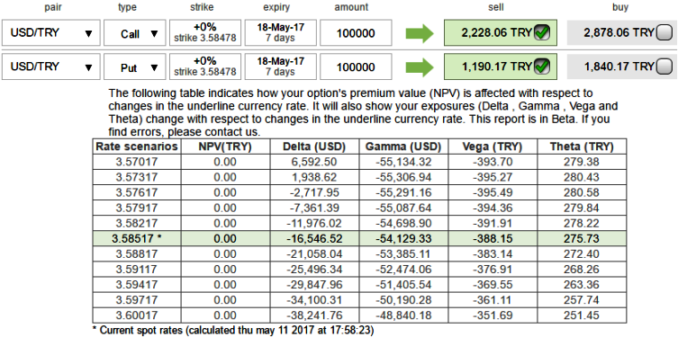 Maximum returns for the short straddle is achieved when the USD/TRY price on expiry is trading at or near spot levels only as both the instruments have to wipe off worthless. So that the options trader gets to keep the entire initial credit taken as profit.